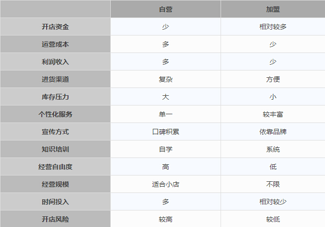 以自營單干的方式開母嬰店,更適合有一定開店經驗和了解母嬰市場的人,或是有好的進貨渠道的人。若是店鋪規模較小的社區型母嬰店,自營開店也是可以的。自營母嬰店的優劣具體如下: