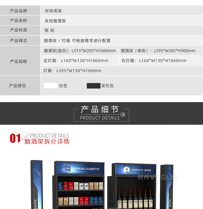 【描述】此款便利店貨架是時尚貨架為便利店收銀區設計的而一款收銀臺煙酒架。它由